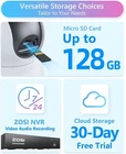 Full Room Coverage, See it All 360° Pan & 108° Tilt let you to monitor every part of your home, ensure that no corner goes unnoticed Keep Watch Your Baby Extraordinary 2K night vision let you see every move of your baby clearly, even in pitch-black room Stay Alert to What Truly Matters Keep a vigilant eye on human presence with smart person detection Peace of Mind, Always in Sight When person motion detected, the camera will auto track the target them in your timeline of sight. Instant connection at your fingertips With a simple touch of C518, your family can easily initiate a call to you. Whether they need help, share news, or just want to stay connected, this innovative feature brings your family closer together. Hear & Talk in Real Time Embrace real-time interactions. You can swiftly respond to your child's cry, comfort your fluffy friends, or even address unexpected visitors, all through real-time communication. Stronger Network Performance This indoor camera works on both 2.4GHz and 5GHz WiFi. Choose the WiFi band that suits your needs. Easy and Free Remote Access Zosi Smart App/Client with no subscription fee, protect your home security even when you are away. Choose Your Storage Store video on micro SD card (up to 128GB, not included) , cloud storage or connect camera to NVR. Hands-free voice control Check what's happening by simply using intuitive voice commands via Amazon Alexa for ease of use. Convenient playback Navigate the timeline and access specific video clips with ease. Multi view of multiple cameras Easily manage multiple cameras in conjunction with the ZOSI NVR. This allows you to view and control all cameras at the same time. Security of the data Thanks to the certified local AWS server, all videos are encrypted on the device. Your data will be treated confidentially. Easy setup Connection Method Via QR Code: 1.Tap the “+” icon to add device and select Camera C518 2.Tap Scan QR Code. 3.Scan the QR code on the camera or manually enter the device ID 4.On the Device Information page, name the device and tap Add an Unconnected Device. 5.Select the Wi-Fi network for the device and enter the password. Tap Next. 6.On Scan QR Code page, let your camera lens scan the QR code generated on your smartphone. 7.After you hear a beep sound and voice prompts “Wireless Configuration Succeed” “Wireless connecting, please wait” from the camera, Tap Next. If you hear “Wireless Connection Succeed”, then tap Next. Finish the initial and tap Done. On Oct 25, 2024 at 23:06:05 PDT, seller added the following information: