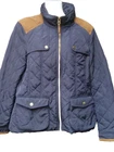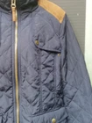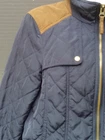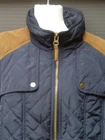 Zara Basic women's country style quilted jacket UK M Navy blue with brown cord trim 19'' pit to pit 25'' from shoulder to bottom hem Full zip closure Snap button pockets In very good+ used condition, very light wear