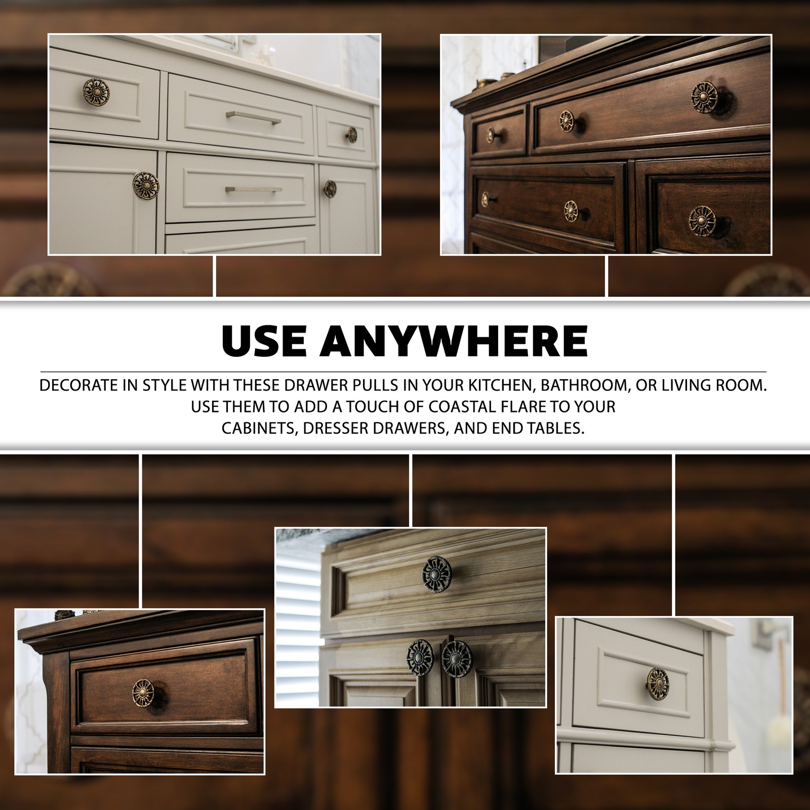 Add a bit of celestial charm to any room with this six-piece set of round sun drawer pulls. Produced with a sturdy cast iron design and an antiqued metallic gold painted finish, each knob provides an easy grip handle for any end table, cabinet, or drawer, while giving a unique aged appeal to your bedroom, bathroom, living room, or kitchen. Each pull comes with a mounting screw for a fast and simple installation, and each knob measures 2 inches in diameter, with a 1-inch projection. Our eBay Store About Us Add to Favorite Sellers Set of 6 Antique Gold Finish Sun Cast Iron Drawer Pulls - Decorative Cabinet Knobs for Unique Home Decor - 2 Inch Diameter - Celestial Charm for Stylish Spaces Overall Size - Each knob measures 2 inches in diameter and has a 1-inch projection, providing a substantial grip for any drawer or cabinet. Sturdy Decor - Crafted from durable cast iron, these sun-shaped drawer pulls add a celestial accent to cabinets, dressers, or end tables, ensuring long-lasting charm. Aged Appeal - The knobs are hand-painted with an antiqued metallic gold finish, creating a rustic and unique appearance that adds character to any piece of furniture. Quick And Easy Installation - Each pull comes with a single screw, included in the set, allowing for effortless installation on drawers or cabinets. Enhance your room's style in no time. Wonderful Gift - Whether for yourself or loved ones, these decorative drawer pulls make a thoughtful and stylish gift, bringing a touch of celestial charm to any living space. Add a touch of celestial elegance to your living spaces with this six-piece set of round sun drawer pulls. These exquisite pulls are crafted from robust cast iron and adorned with an antiqued metallic gold finish. Not only do they offer a secure grip for easy access to your drawers and cabinets, but they also infuse a sense of vintage charm into your home decor. Whether adorning end tables, dressers, cabinets, or drawers in your bedroom, bathroom, living room, or kitchen, these pulls exude a unique aged allure that sets them apart from ordinary hardware. With a diameter of 2 inches and a projection of 1 inch, these knobs are designed for both functionality and style. Each pull is accompanied by a mounting screw, ensuring a straightforward installation process. The sun-inspired motif adds a celestial touch to your furniture, creating a seamless blend of modern convenience and antique aesthetics. Your living spaces will be transformed into a harmonious combination of craftsmanship and celestial design. These decorative sun drawer pulls are built to withstand the test of time, elevating your ordinary furniture into extraordinary statement pieces. Make a distinct and stylish addition to any room in your home, where each piece reflects the perfect fusion of artistry and celestial inspiration. Product Details Color Gold Height 2 Length 2 Weight 0.9 LB