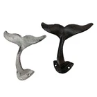 Zeckos Set of 4 Green Verdigris Finish Cast Iron Whale Tail Wall Hooks