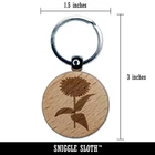 Zinnia Flower Solid Engraved Wood Round Keychain Tag Charm