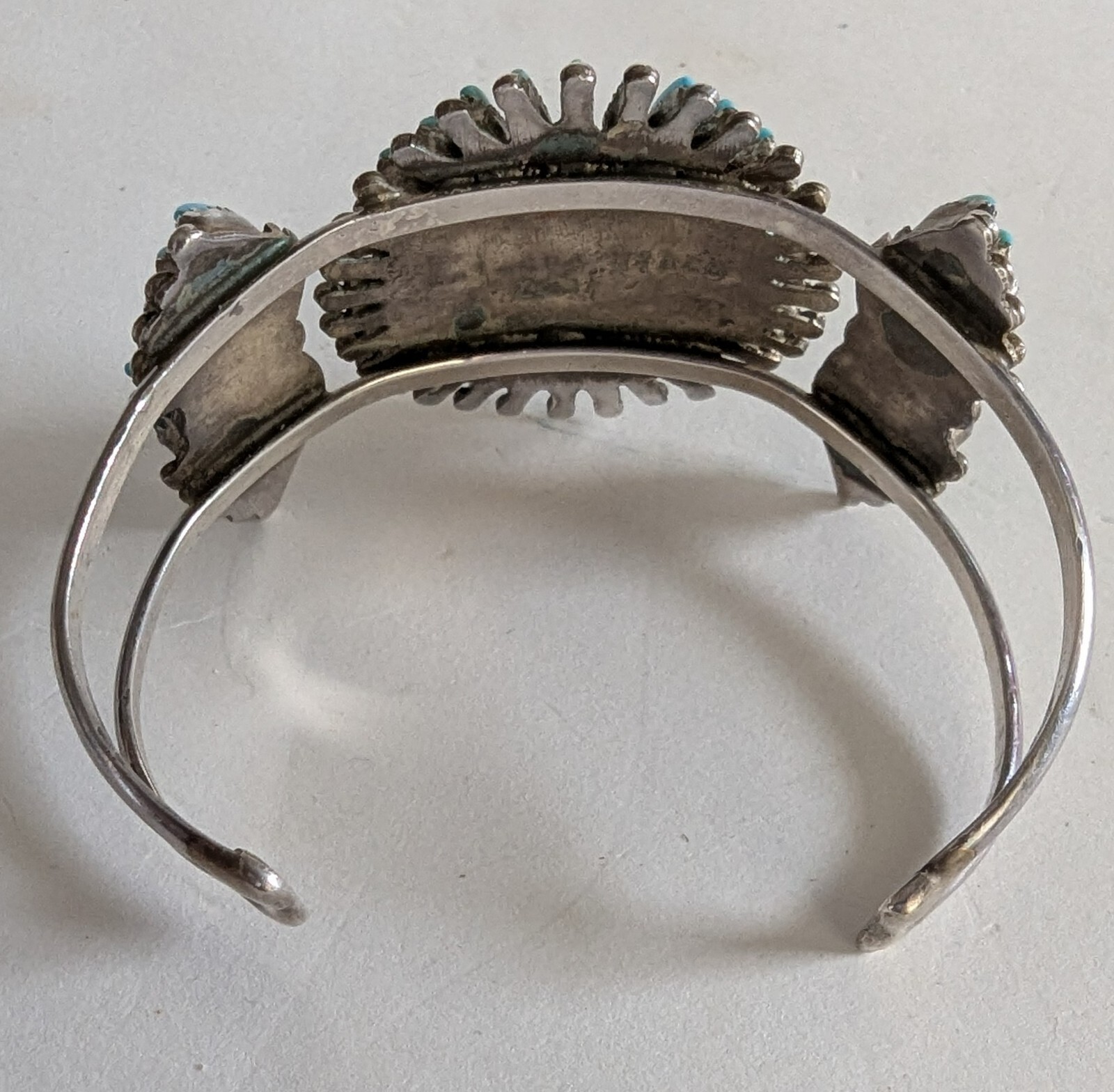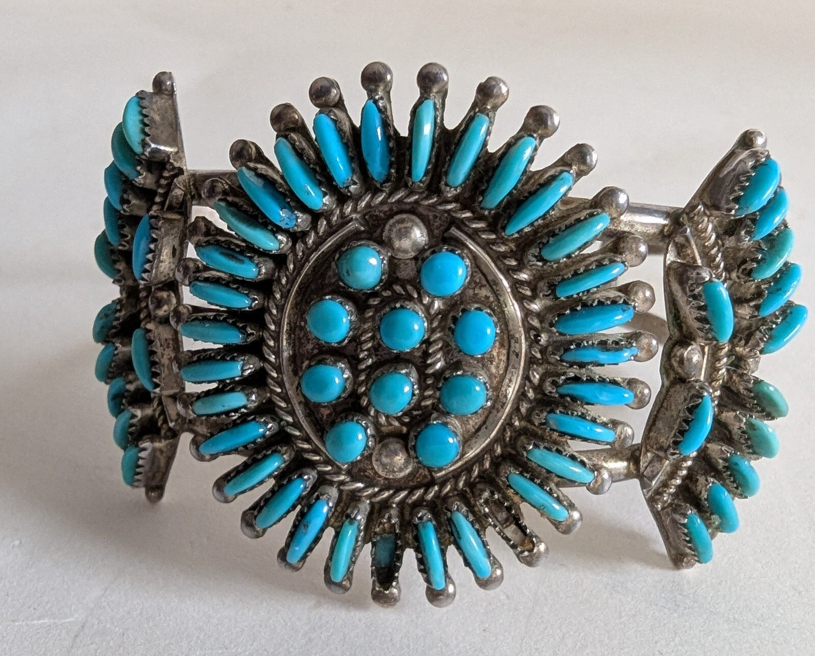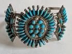 Missing stones Zuni Sterling Silver Turquoise Needlepoint Cuff Bracelet Ray Eva Wyaco Signed Missing a few stones. Please see photos.