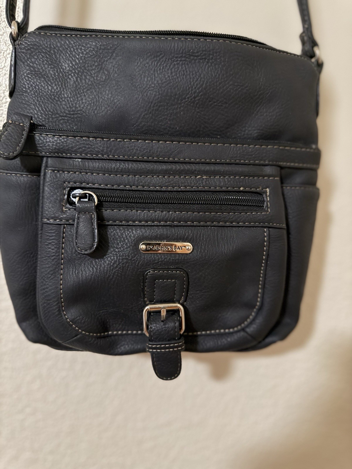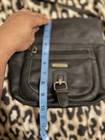 The black faux leather MultiSac Flare Crossbody bag is a stylish and practical handbag for women. With a solid pattern and zip closure, this medium-sized bag features a crossbody strap handle style for easy carrying. The silver hardware accents add a touch of elegance to the classic black exterior design. Made with polyester lining material, this bag is perfect for everyday use and offers a timeless yet trendy look.