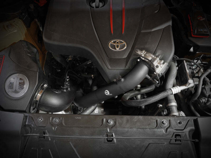 Smooth transitions in the mandrel-bent aluminum tubing decrease turbulence and minimize pressure loss, increasing horsepower and torque. This pipe kit includes high-quality, stainless-steel, spring-loaded T-bolt clamps and heavy-duty, 5-ply, polyester reinforced silicone couplings. This charge pipe kit features factory style billet aluminum quick-connect adapter with an o-ring seal to ensure a leak-free fit while maintaining superior strength and durability. Finished in wrinkle black powder coating with a unique laser-etched aFe POWER logo for a custom look. BladeRunner 2-3/4 IN Aluminum Hot Charge Pipe Black Toyota GR Supra (A90) 21-22 L4-2.0L (t) Fitment: Toyota GR Supra Base 2021 Toyota GR Supra Base 2022 Toyota GR Supra Base 2023 Toyota GR Supra Base 2024