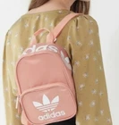 This adidas Originals Santiago Mini Backpack in Dust Pink is perfect for travel and school/sports activities. The backpack features an adjustable strap and zip closure for secure and comfortable carrying. It also has multiple pockets for convenient storage of your essentials. The exterior of the backpack is made of durable polyester material with a logo print design, and the straps are accented with the same logo. This mini backpack has a width of 8 inches, a height of 10 inches, and a depth of 8 inches, making it a great compact option for any occasion. Whether you're heading out for a day trip or need a reliable backpack for school or sports, this adidas Originals Santiago Mini Backpack is a great choice.
