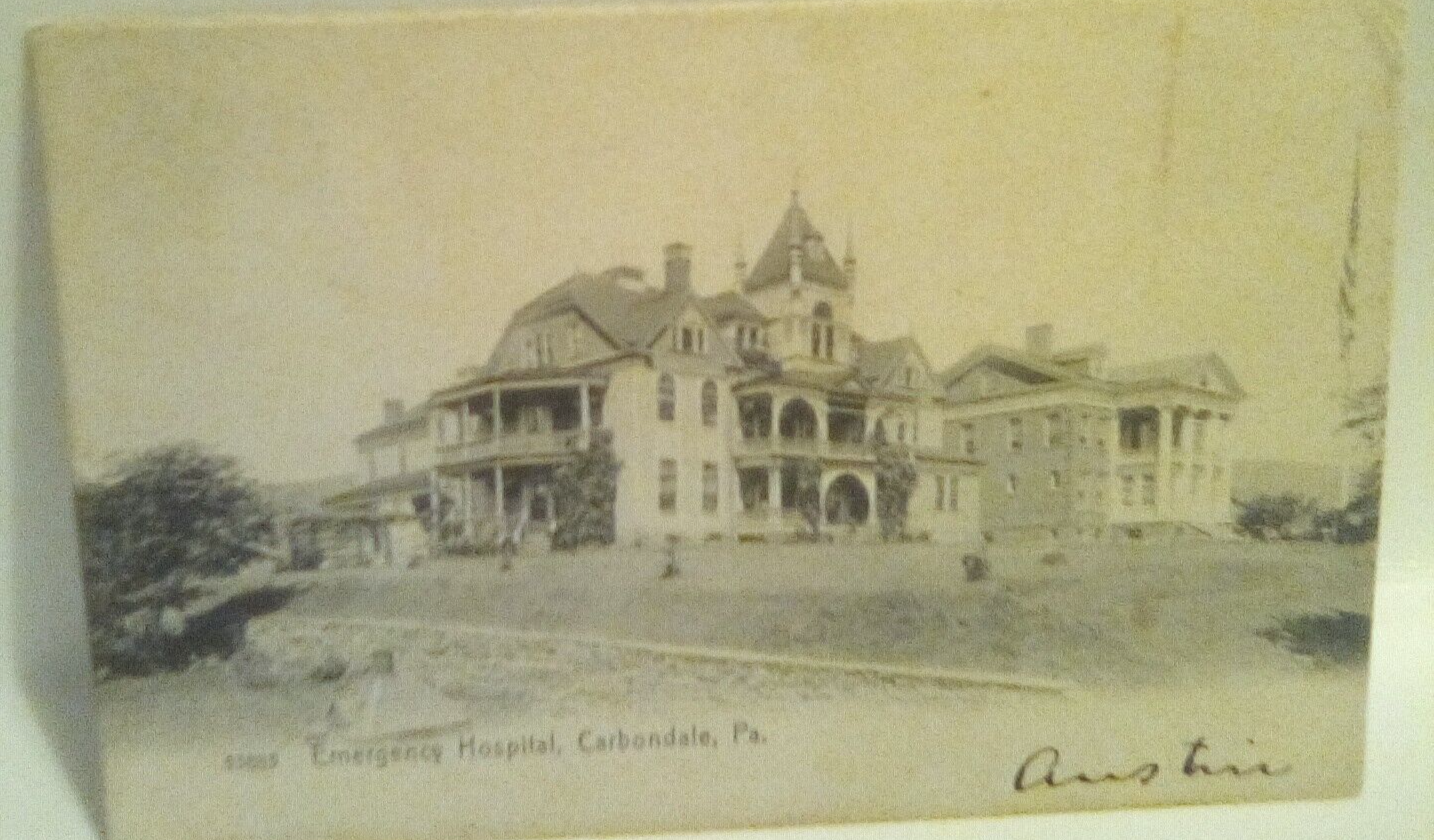 The antique postcard "Emergency Hospital, Carbondale, PA." posted in 1909 is a rare and valuable collectible item. This original real photo postcard captures a unique glimpse of history from the early 20th century, showcasing a scene from an emergency hospital in Carbondale, Pennsylvania. With its standard size, cardboard material, and undivided back, this postcard offers a piece of North American history from the United States, specifically focusing on landscapes, famous places, technology, and occupational themes. The postcard was manufactured in Germany and published by Rotograph Co., NY, adding to its historical significance and value for collectors.