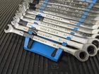 Armstrong Tools USA 12pc Metric Ratcheting Combination Wrench Set 8-19mm Blue wrench rack not included. PLEASE NOTE: This set is a little rough, the 8mm 9mm and 15mm are not ratcheting properly. Additionally, the 10mm and 14mm are difficult to switch between forward and reverse.