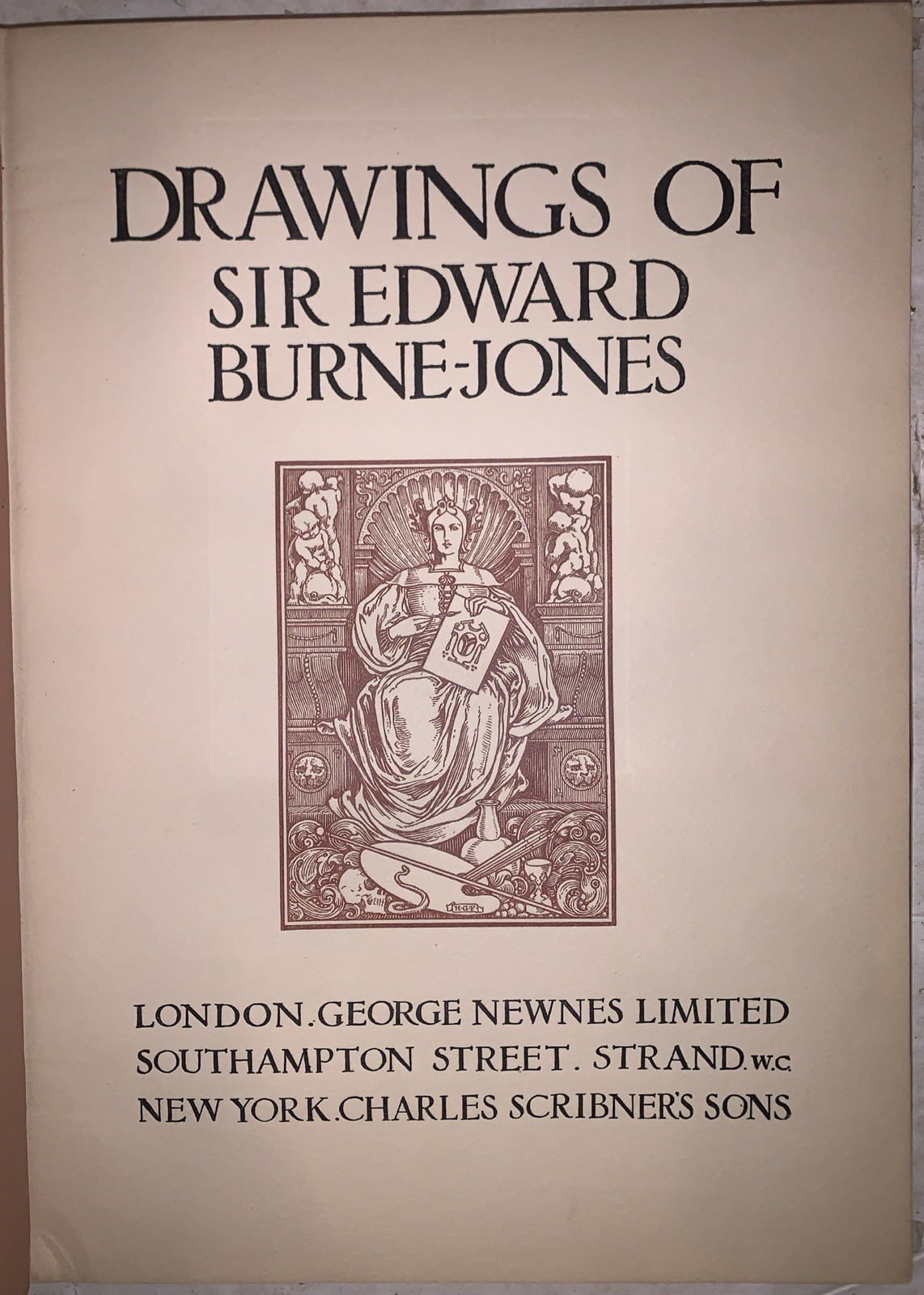 Drawings of Sir Edward Burne-Jones London: George Newnes Limited ND, circa 1896-1905 First Edition Thus Folio, publisher's original gilt-lettered white cloth over paper covered boards. Top edge gilt. Illustrated with frontispiece and 46 full-page plates. Now in a clear protective jacket. Some rubbing and wear along corners and edges, slight discoloration, else in very good condition. If you have any questions, feel free to ask, and don't forget to check out my other listings.