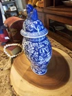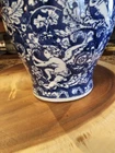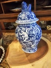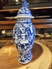 This beautiful vintage ginger jar is a rare find for any collector. With its intricate blue and white design, it is a true piece of Chinese artistry. Made in China, this jar is a unique addition to any antique collection, and its rarity only adds to its value. Its stunning appearance is sure to catch the eye of anyone who sees it, and its size and shape make it a perfect display piece. Whether you are a fan of Asian antiques or simply appreciate the beauty of vintage items, this ginger jar is a must-have. Don't miss your chance to own this rare and beautiful piece of history.