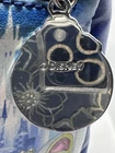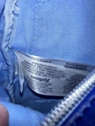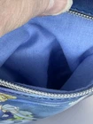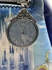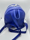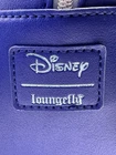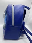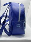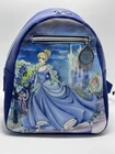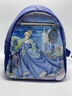 This Loungefly mini backpack is a must-have for any Disney fan, featuring a beautiful painted picture of Cinderella leaving the ball on the front. The bag is made of faux leather and polyurethane, with a blue exterior color and silver hardware. The backpack has a zip closure and a shoulder strap handle in blue color. There is a clock charm as the pull for the zipper on front of bag. The bag is in almost perfect condition. There is nothing wrong with the bag that I can see. Only used two short times. Bag looks so nice. The bag width is 9 inches, bag height is 10 inches, and bag depth is 10 inches. The bag comes with a pouch on inside and a bag charm. The interior lining is made of fabric in blue color. The backpack is part a of the Disney Loungefly product line and is perfect for women who love Disney characters. If you have any questions please contact me. I am glad to help.