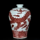 $ 210.68Antique 11.0 Song Dynasty Guan Kiln red Ding porcelain double dragon vase