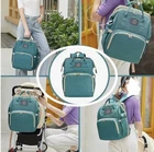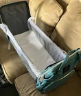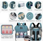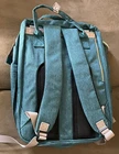 This teal-colored backpack is the perfect accessory for parents on-the-go. Its large size offers ample space for all your baby's essentials, making it especially useful for travel. Designed for both moms and dads, this unisex backpack is versatile and practical. Crafted with high-quality materials, this backpack is both durable and stylish. Its various pockets and compartments make organizing your baby's items a breeze. Whether you're running errands or going on a family vacation, this diaper bag backpack is a must-have accessory. New and never used, but the stroller straps are missing. They can be purchased wherever baby items are sold. All other parts pictured are included. Backpack converts to a bassinet or changing station. This diaper bag is a must for the new mother on the go.