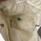 Dolce & Gabbana white perforated leather shoulder bag. This vintage-inspired piece features a unique laser-cut or "perforated" exterior design, often over a contrasting beige or fabric underlayer. The bag has wear It has a stain inside It measures approximately 20” x 11”