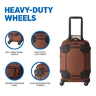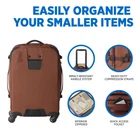 Description Travel confidently with the all-new Gear Warrior XE Carry-On Luggage. Made from 100% post-consumer recycled, water-resistant fabric, this carry on-sized bag is designed to thrive in crowded trains, airport lines, and even while negotiating that rough path to your hike-in cabana. The heavy-duty wheels make navigating the terrain a breeze, while the expansion panel provides additional space for whatever souvenirs you purchase along the way. Keep your electronics safe in the interior laptop sleeve and easily organize your smaller items with the interior pockets. With reinforced corners and a durable handle system on top of the rest of its features, you know you’re getting a carry-on that is built to last. RUGGED water-resistant travel luggage made with 100% post-consumer recycled polyester dobby fabric, with lockable zippers and central lock point to keep your travel essentials secure HEAVY-DUTY spinner carry on suitcases with wheels, impact-resistant handle system, and Hypalon-reinforced corners and kickplate VERSATILE rolling suitcase with heavy-duty lash points and multiple grab handles EXPANDABLE travel suitcase with zippered expansion panel on main compartment, interior laptop sleeve and mesh organization pockets, interior/exterior compression straps, ID sleeve and key clip PEACE OF MIND when you travel with Eagle Creek’s rolling suitcases with wheels, covered by our No Matter What guarantee