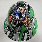 For sale a genuine WET WORKS IMAGING hydro dipped hard hat . That has been custom dipped in house wet works imaging , premium printed and then clear coated for that mirror like shine you see in our photos . PLEASE IF YOU ARE COMPARING THIS TO OTHERS GO AND ENLARGE PHOTOS TO SEE THE REAL DIFFERENCE PLEASE COMPARE OUR SHINE TO THE MORE EXPENSIVE COMPETITION , THERE IS NO COMPARISON , GO COMPARE THEN COME BACK TO THE BEST PRICE , BEST SHINE , BEST HYDRO DIPPED HARD HAT ON THE INTERNET PERIOD . We are the only hydro dippers approved by the manufacturer to dip the Ridgeline hard hat . We meet stringent quality control guidelines that manufacturers demand , so you know you are getting a quality product . All Ridgeline hard hats that we sell are ANSI TYPE 1 CLASS C, G , AND E , OSHA APPROVED , and come with a fully adjustable swing and ratchet head gear that fits hat size 6 3/4 to 8. Padded rear section of head gear is a super nice touch not to mention the super soft replaceable front sweat band., the head gear is also fully adjustable front to back and up and down 2 different positions each and this is one of the lightest hard hats on the market coming in at under a pound WOW!!!!!!! This type of quality fit and finish and don't forget the PRICE . There's only one place to get all this .WET WORKS IMAGING . All of our hard hats comes with free shipping and the piece of mind you are getting the best in our opinion hard hat out there . All images will be as close to photos as possible , please bear in mind that hydro dipped hard hats are like finger prints two will look close but never the same . So yours will be unique to you and only you . All of our Ridgeline hard hats are direct bond to plastic application meaning no chance of the print lifting off of any of our hard hats , the clear coat may scratch but rest assured the print will not come off . WET WORKS IMAGING OFFERING UP TOP QUALITY CUSTOM HARD HATS AT A PRICE THAT CANT BE BEAT !!!!!!!!!