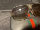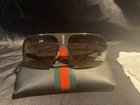 Rare Gucci aviator sunglasses model 1829 GG6611130. There is a small scratch on the right lens (see 5th picture)but it does not effect the vision of the sunglasses. Will come with case.