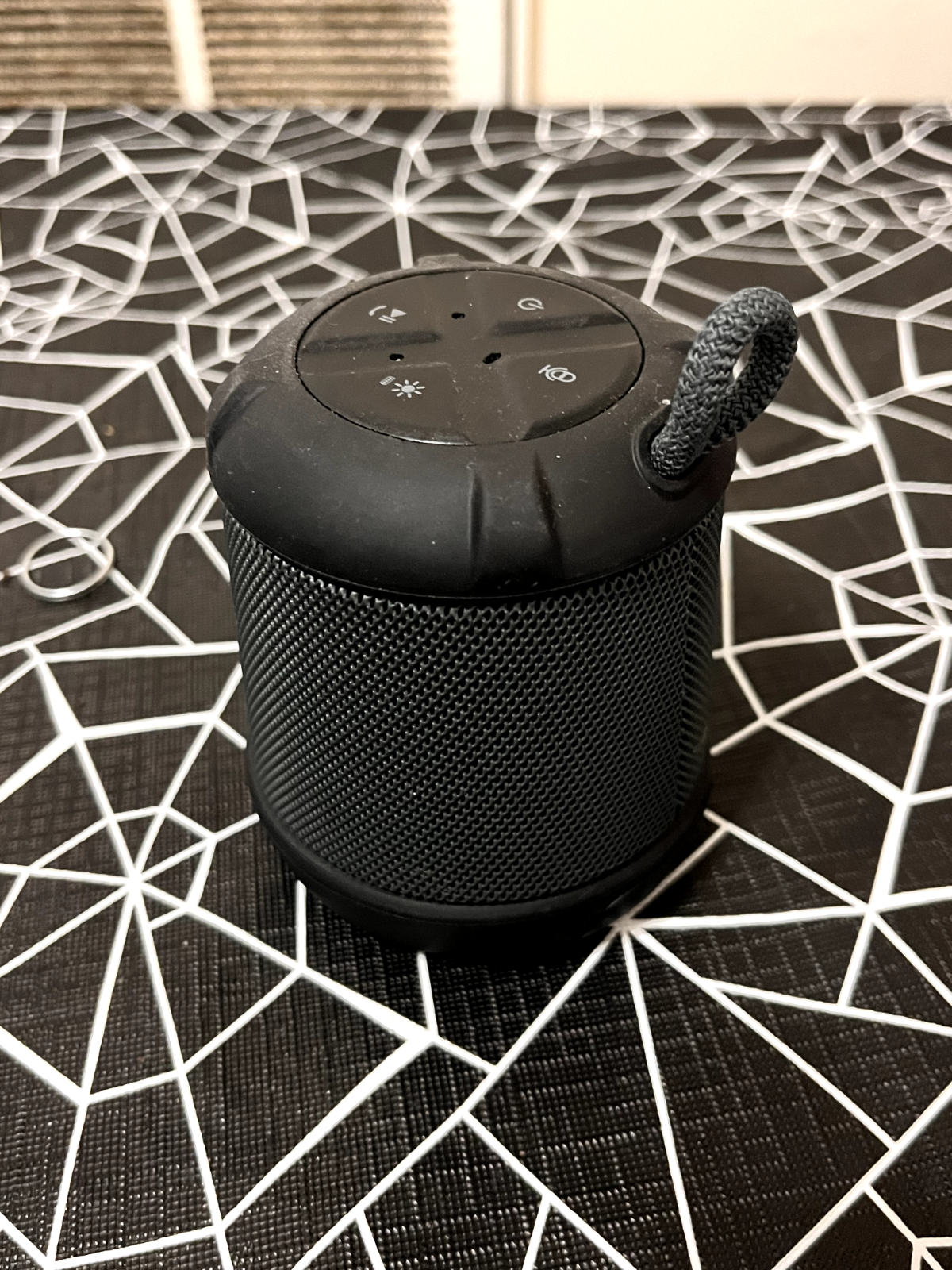 iHome Bluetooth Speaker. Waterproof and good for small spaces. Does not include charging cable, or auxilary input, and uses USB for charging. Features color changing modes, and can even change colors with the music you're listening to.