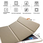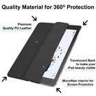 Features of these DuraSafe iPad Case: Exclusively Designed for Apple iPad Tablets - This DuraSafe Case is exclusively designed for the Apple iPad Model selected in the “iPad Model & Size”. This Case allows Full Access to all Features & Controls (Cameras, Speakers, Ports & Buttons) without removing the case. Perfect fit, precise cut-outs and buttons provide easy access to all of the features & functions of your iPad. Clickable tabs are designed for all of the buttons & are easy to press. Full Protection in Ultra Slim & Lightweight Profile for Durability & Safety of your Device in Style - Premium PU Leather Soft-Touch Front Exterior, Soft Scratch-Free Microfiber Interior offer great Protection. High Quality Lightweight Material & Excellent design makes this case feel very Stylish & Premium & Fully Protects your device against Shock, Scratch, Fingerprint, Slips, Dirt & Corner Damages. Dual-Angle Viewing/Typing & Tri-Fold Stand Function - Built-in Dual Angle Viewing/Typing Stand makes it much more comfortable for Typing, watch videos, surf web & reading while keeping both your Hands Free & avoids any Joint Pain. Allows unobstructed gesture swipes & enhances the beauty of your iPad due to its exclusive Bezel-Free design. Built-in Magnet also helps to hold your iPad steady while using the Dual-Angle Stand feature & prevents your iPad from falling. Smart Auto Sleep/Wake Function - Built-In Magnet provides Automatic Sleep/Wake Feature by closing/opening this Smart Cover & helping In Energy-Saving resulting in increased Battery Life. Opening this smart case Lid automatically wakes up your iPad & closing the lid automatically puts your iPad to sleep. Easy Snap On & Off Magnet securely keeps the case closed firmly on the iPad screen when you close the cover adding even more protection to your iPad. This Case is Easy to Install Compatibility: These cases are available for all iPad Models & Sizes so please select the correct model of your iPad when placing the order to avoid any fitment issues. [NOTE: Please look at the below table to know correct Model/Size of your iPad in case you are not sure about it] DuraSafe Ultra Slim Smart Case Case Video: Click on the below picture to play the video – Video will open in a new window We have different style cases available for all iPad Models. Have a look at below Styles by clicking on the pictures. You will be automatically redirected to the listings of these styles by clicking on the pictures. TriFold - Smart Case with Soft Silicone Back: TriFold - Smart Printed Case with Transparent PC Back: Slim Folio – Printed Smart Case with Auto Sleep/Wake Function: TriFold - Smart Case with Soft Silicone Transparent Back: TriFold - Smart Pencil Holder Case with Soft Silicone Back: 360° Rotatable 3-Layer Heavy Duty Rugged Case for Full Protection: Extremely Fast Shipping - Most of the cases are delivered in 2 - 4 Business Days to Lower 48 USA states. Delivery to other states may take little longer. Premium Quality Our motto is to develop premium cases for our customers. We have vast expertise in this field and use state of the art manufacturing facilities help us deliver unparalleled products to our customers. Your 100% satisfaction with your purchase is our objective. Please don't hesitate in writing to us in case of any questions.