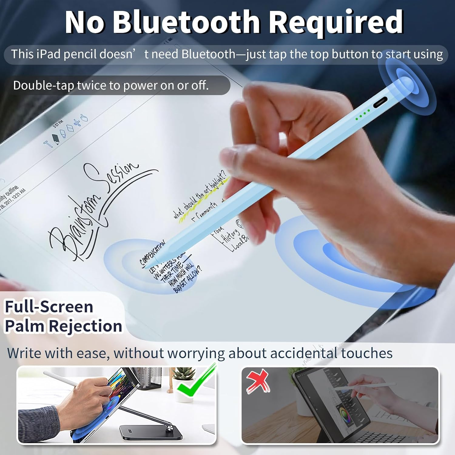 Stylus Pen for Ipad 9Th&10Th Generation, Ipad Pencil with Palm Rejection & Tilt Sensitivity, Pencil for Apple 11/13-Inch, Ipad Pro 11/13-Inch, 11/12.9 Inch, 6-10Th (Blue) [Replaceable Tips]: Crafted from high-quality materials, the iPad pencil tips are smooth, durable, and easy to replace with a screw-type design. Each package comes with 7 additional tips to ensure long-term use. [Precision & Palm Rejection]: Featuring a 1.7mm precision tip, advanced palm rejection, and tilt sensitivity, this pen for apple delivers an effortless and natural drawing, writing, and note-taking experience. Ideal for both casual and professional use. [Wide Compatibility]: This iPad pen Compatible with the following models: iPad 10th/9th/8th/7th/6th Gen, iPad Pro 11" (all generations), iPad Pro 12.9" (3rd to 7th Gen), iPad Pro M4, iPad Mini 5th/6th Gen, and iPad Air M2/5th/4th/3rd Gen. Before purchasing, check your iPad model under [Settings > General > About]. Not compatible with earlier iPad versions or other brands' touchscreen devices. [Smart Standby Mode]: The iPad stylus save power with intelligent sleep mode, which activates after 30 minutes of inactivity. With up to 8 hours of continuous use and a fast 20-minute charge time, you'll stay productive longer. [Quadruple-Indicator Power Display]: Easily monitor your stylus's battery status at a glance. The 4-light system indicates: 4 lights for 75%-100% charge, 3 lights for 50%-75%, 2 lights for 25%-50%, and 1 light for less than 25%. A data cable is included for added convenience. [Double-Tap Power On & Easy Use]: The pencil for Apple simply double-tap the top of the stylus to turn it on or off—no need for buttons. Plus, no Bluetooth connection is required, making setup hassle-free. If connection issues arise, just disable Bluetooth on your iPad: go to Settings > Bluetooth > Turn off, or disconnect Apple Pencil by navigating to Settings > Bluetooth > Apple Pencil > Click the “i” > Forget This Device. Product Description Easy to Use No need to connect to Bluetooth, simply double-tap the top to turn it on/off Replace the Tip 7 replacement tips included, extend the lifetime of the stylus Magnetic Adsorption Easy to carry and prevents the stylus from slipping or getting lost. Batteries Required? Yes Are Batteries Included Yes Color blue Material Aluminum Country of Origin China Compatible Devices iPad Pro 11/12.9in, iPad 6/7/8/9/10, iPad Air 3/4/5, iPad Mini 5/6, 2024 iPad Pro M4, iPad Air M2 Item Weight 1.3 Ounces Batteries 1 Lithium Ion batteries required. (included) Number of Batteries 1 Lithium Ion batteries required. (included) Package Dimensions 8.07 x 2.09 x 0.67 inches 2.09 inches x 8.07 inches x 0.67 inches. Weight: 1.3 oz Shipping from the USA All of our products are shipped from the USA, ensuring quick delivery to your destination. Payment We offer the following payment methods: PayPal, credit card, bank transfer, and eBay's secure payment system. Free Shipping & Free Returns Shipping within the USA is FREE. Additionally, any return is absolutely free for you. Risk-Free Purchase You have the option to return an item within 30 days without any justification. We cover the return shipping costs! Fast Shipping We ship immediately upon receipt of payment. Generally, the package is delivered within 2-3 days in the USA. If it takes longer, we will contact you. Quality and Costs Made in Europe, USA, China No customs fees or additional charges Total satisfaction guarantee Invoice with declared VAT available upon request in .pdf format Feedback Your feedback is very important to us. After you pay for your purchase, you will automatically receive positive feedback from us.