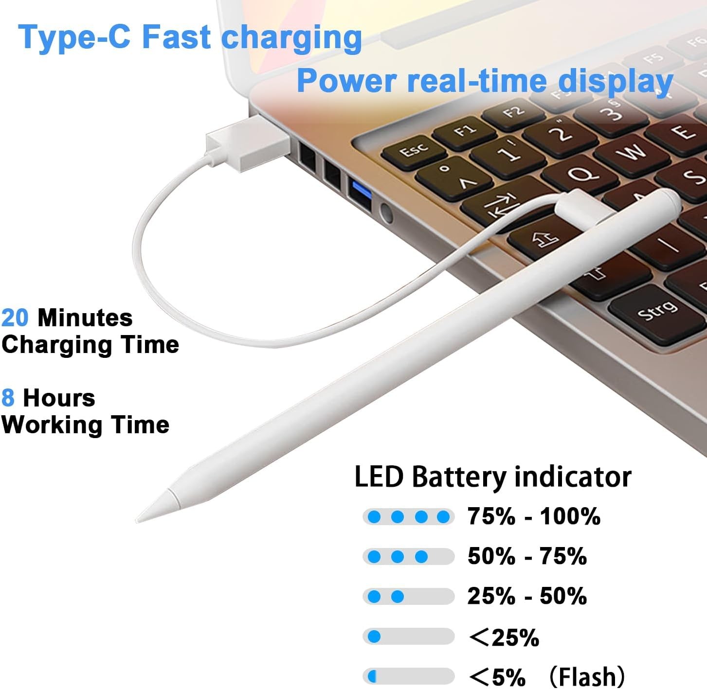 Stylus Pen for iPad 9th&10th - Type-c Charging Pencil ipad Palm White 🌟 Product Features ✨ 【Compatible with iPad only】 This iPad Pencil only supports the iPad (2018-2025) series, iPad Pen is compatible with iPad 11(A16)/10/9/8/7/6, iPad Air 3/4/5/M2/M3, iPad Pro 11-inch 1/2/3/4/M4, iPad Pro 12.9-inch 3/4/5, iPad Pro 13" (M4), iPad Mini 5/6 Gen. 【Note】 This iPad pen is Not compatible with iPad models prior to 2018, Not compatible with iphones, Not compatible with Android or Windows phones and tablets. Please confirm model compatibility before placing an order ✨ 【Power display/Palm Rejection】 The active stylus pen for iPad has 4 power indicators, each representing 25% power, so you can watch your battery consumption progress in real time so you can recharge before important work begins. This iPad pencil has palm rejection. You don't have to worry about putting your hand on the Tablet to prevent the iPad Tablet Pen from writing, which effectively prevents the palm from interfering with the stylus, so you can write and draw more freely ✨ 【Tilt sensitivity /POM tip】 The stylus pen has tilt sensitivity, which can simulate the different thickness of the line texture when drawing with pencil on iPad notes, making the painting more realistic. 【Note】Pressure sensing is Not supported. The stylus pen tips is made of the same POM material as the A-ple Pencil, making it accurate and sensitive writing. 【Nibs】This ipad air pencil set comes with 4 additional replacement nibs to extend the life of the pen ✨ 【Smart Touch Switch/Magnetic function】 The stylus only needs to be turned on and off by just double-tapping the top switch, no Bluetooth/app connection required. The front of the iPad stylus has a magnetic clip function, so you can attach the stylus to your iPad when you're at work or on business. Magnetic compatible iPad models: iPad Pro 11", iPad Pro 12.9" and iPad Air 5/4 ✨ 【Type-C Charging Design】 This iPad stylus pencil uses the latest popular Type-C charging port on the market to make it easier for you to charge while you work. The stylus pen for ipad takes 20 minutes to charge and 8 hours to use ✨ 【After-sales Protection】 What do you get? You can get 1*Active Stylus Pen, 4*POM replacement tips, 1*Tyep-C charging cable, and 1*English manual. Our dogain iPad pencil provides 12 months service, if there is a problem with the product can contact us, our team will give you a reply within 24 hours 📦 Shipping: Shipping is complimentary within the lower 48 US States. 😊 🚫 We Do Not Ship to PO/APO Boxes, HI or Alaska 🌍 We Do Not Ship Outside of the Continental US ⏱ All items ship within 24-72 hours of Payment 📞 For large items that require Freight shipping, a valid phone number is required to call and schedule your delivery 📜 Terms of Sale and Feedback: ⭐ Feedback is extremely important to us and eBay 👍 If you are satisfied with our transaction, please take a moment to leave Positive Feedback. YOUR Satisfaction is our #1 Priority! ⚠ If there are any issues, PLEASE contact us BEFORE leaving a neutral or negative rating so that we may resolve any concerns. 💖 We PROMISE we can make you happy if you give us a fair chance. 🔃 Returns / Concerns: 📅 All items qualify for returns within 14 - 30 days of receipt. Buyer is responsible for return shipping on any item that is not damaged. 🛒 Please be sure this is an item you want before making your purchase. Customer Satisfaction is our TOP priority! 📦 All items are IN STOCK at time of listing. 📊 Inventory on eBay changes constantly and it is impossible to maintain a perfectly accurate count of all items. 🙋♀️ Please do not penalize us if we have to issue you a refund! 🙌 Thank You For Your Business!