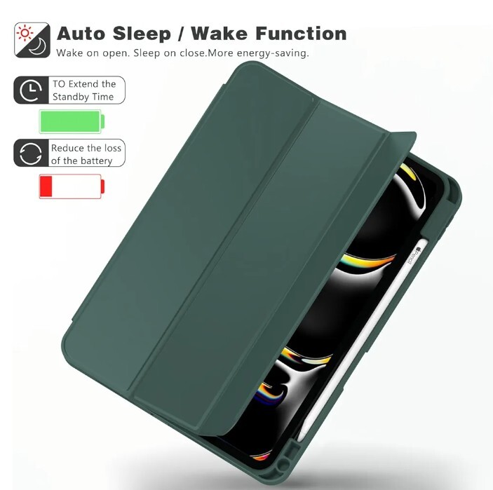 This iPad Pro 11 Inch Case M4 (5th Generation) with Pencil Holder is the perfect accessory for your tablet. It is a folding folio case that is made of synthetic leather and comes in a stylish Midnight Green color. The case is compatible with 11 inch screens and has a smart case feature that makes it stand out from the rest. The case is personalized with a pencil holder and is manufactured in China. It is sold in a unit quantity of 1 and is perfect for those who are looking for a high-quality iPad case. The case is categorized under Computers/Tablets & Networking, Tablet & eBook Reader Accs, and Cases, Covers, Keyboard Folios. Get your hands on this smart iPad case and take your tablet to the next level.