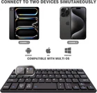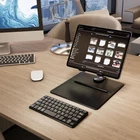 Universal Compatible with All-Size Tabs & Phones: The stand holder is compatible with all tablets and phones that is less than 3kg and supports Bluetooth connection, which includes ipad pro 13 inch/12.9 inch/11 inch, Samsung Galaxy Tab A9 Plus/S9 FE and Galaxy z fold6/Fold5/Fold4/Fold3. 360°Rotation & Adjustable Height: Adjust your viewing angle with the 360° rotation and adjustable height design. It allows you to type, stream or video call at a comfortable viewing angle. Heavy Duty Aluminum Iron Stand: The stand is made of Aluminum and Iron. It is sturdy and stable enough to hold your large size tablets. Hold Up to 6.6lb Weight: With large and stable base, the stand holds your large tablet securely without worry about falling even vigorous shaking of the desktop. Detachable Dual Bluetooth Keyboard: The detachable keyboard features a magnetic adsorption design, allowing you to remove it from the base if you want use it separately. Also the Bluetooth keyboard allows you connect to 2 devices simultaneously. Magnetic Pen slot: The stand is designed with magnetic adsorption for pencils. NOTE: only pens with magnetic design could be placed into the slot. Product Description Doohoeek Metal Stand Bluetooth Keyboard 360°Rotate Stand Holder with Dual Bluetooth Keyboard Doohoeek Stand Bluetooth Keyboard Dual Bluetooth Connection You could connect the keyboard to two devices at the same time. Simply short press the "Fn" key + "1" or "2" key.