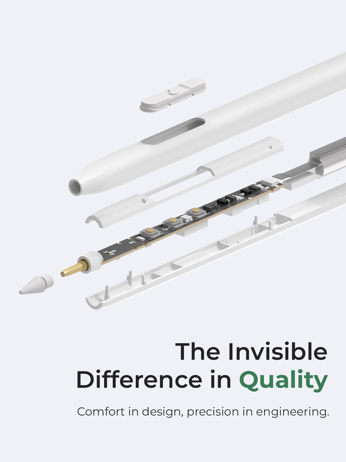 Unlock a new level of creativity and productivity with the iPad Stylus Pen H1. Designed for professionals, students, and artists alike, this versatile stylus combines precision, convenience, and style. Key Features: 9 Shortcut Functions: Simplify your workflow with intuitive buttons that enable seamless drawing, erasing, and highlighting in apps like Goodnote and Procreate. Palm Rejection Technology: Write and draw comfortably with your hand resting on the screen, ensuring only your strokes are registered. Tilt Sensitivity: Achieve dynamic shading and varied line thickness, mimicking traditional art tools. Convenient Charging Options: Magnetic Wireless Charging (30-40 minutes) Fast USB-C Charging (15-20 minutes) With up to 10 hours of battery life, enjoy uninterrupted use throughout the day. Enhanced Tip Design: The POM tip delivers a smooth, paper-like experience while minimizing screen wear. Two additional tips are included for long-term durability. Wide Compatibility: Works seamlessly with: iPad Pro 11"/12.9" (3rd-7th Gen) iPad Air 11" (3rd-5th Gen) iPad (6th-10th Gen) iPad Mini (5th-6th Gen) Transform the way you use your iPad with the Stylus Pen H1 – precision, style, and innovation at your fingertips. [9 Easy-to-Use Shortcut Buttons] Experience the ultimate in digital precision with this, featuring a unique internal chip and innovative button click technology. With just 3 buttons, you can seamlessly perform 9 essential functions such as drawing, erasing, and highlighting across 30+ compatible apps on Apple iPad like Goodnotes and Procreate, ensuring a smooth, uninterrupted workflow. (Note: Bluetooth connection required for shortcut functions.) [Original Designed with Precision & Tilt Sensitivity] Korea’s patent-designed stylus pen features an ergonomic, anti-roll square shape for comfort and reduced hand fatigue. Offering precise accuracy, palm rejection, and 15°-90° tilt sensitivity (works with supported apps only), ensuring a seamless pen-to-paper experience and a natural feel for drawing or writing. Ideal for artists, journalists, engineers, educators, and students, this stylus is a reliable alternative to the Apple Pencil for creative and professional use. [Durable, Replaceable Pencil Tips] Write and draw naturally with durable POM tips, designed for paper-like smoothness while protecting your screen. Each tip offers wear resistance for at least 7,000 meters of use. The package includes 3 replaceable pencil tips accessories (white, gray, and metal) to suit your preferences. These POM tips closely resemble the Apple Pencil 2nd Generation tips, offering exceptional durability and wear resistance. [Dual Charging Options for Maximum Flexibility] Choose between magnetic wireless charging (approx. 30 minutes) or fast USB-C charging via silicon cable (approx. 15 minutes) for a full charge, offering up to 10 hours of battery life. (Note: Wireless charging is only compatible with specific iPad models.) The long-lasting battery also features an auto-sleep function, automatically entering energy-saving mode after 15 minutes of inactivity. [Wide Compatibility] This iPad Pencil is compatible with all iPad models released in 2018 or later. Including: 11 & 13 inch (M2), iPad Pro 11 & 13 inch (M4), iPad (6th, 7th, 8th, 9th & 10th Gen), Air (3rd, 4th, & 5th Gen), Pro 11 inch (1st, 2nd, 3rd & 4th Gen), Pro 12.9 inch (3rd, 4th, 5th & 6th Gen), Mini (5th & 6th Gen). Note: The new iPad Pro M4 & Air M2 models released in 2024 do not support wireless charging or magnetic attachment. Please confirm your iPad model compatibility before placing an order.