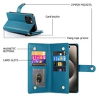 Fr iPhone 16 Pro Max 15 14 13 12 11 Leather Wallet Zipper Case with 9 Card Slots Key Features: Convenience: Built in kickstand for hands free viewing. Includes a premium leather wrist strap for easy carrying. Timeless Style: Crafted in a classic, sleek design ideal for daily use and travel. Thin yet secure, with precise cutouts for ports and responsive button covers. Premium Material: Made from high grade TPU and PU leather to prevent scratches and ensure durability. Comprehensive Protection: Provides full coverage to safeguard your phone from drops and shocks, including camera and screen protection. Multifunctional Design: Includes 9 card slots, and 1 wallet compartment. Features a detachable zippered coin purse and matching wrist strap.