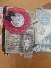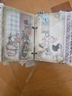 The "junk journal handmade" is a custom-made journal created using a variety of materials such as recycled paper, fabric, beads, and other embellishments. This type of journal is typically made to have a vintage, eclectic look and feel, with various textures and designs incorporated into its pages. It is perfect for those who enjoy creative journaling, scrapbooking, or keeping memories in a unique and artistic way. The handmade aspect adds a personal touch and makes each journal one-of-a-kind.