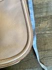 Kate Spade New York Crossbody Bag Pink Leather Gold-Tone Hardware Flat Handles & Single Adjustable Shoulder Strap Tassel Accents & Single Exterior Pocket Jacquard Lining & Three Interior Pockets Zip Closure at Top. ( has mild blue mark in front not visible till you look closely). See photos but this purse is absolutely beautiful