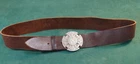 some usual wear on the belt the buckle has minor scratches see picture. Buckle measures apx 2 3/4 " diameter and belt is aprx 2" wide