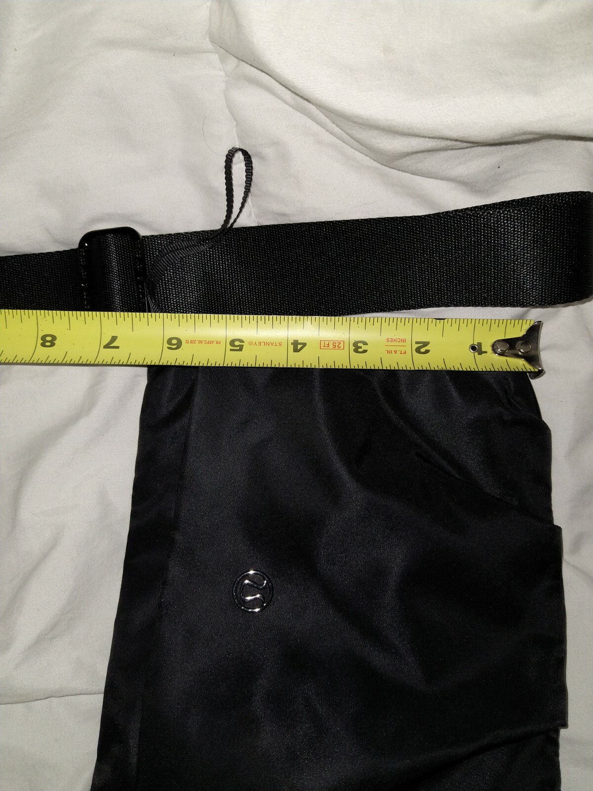 lululemon crossbody bag Black Small. Condition is "Pre-owned". Comes from a smoke free home EUC measurements in pics Light marker inside bag but since it's a zebraish print it's not very visibe Please ask any questions you may have prior to bidding as all sales are final no returns