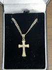 mens 14k gold diamond chain necklace with cross. Shipped with USPS Ground Advantage.