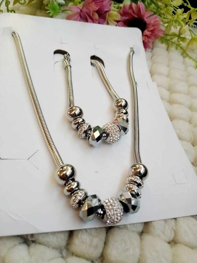 CRYSTAL RHINESTONE NECKLACE & EARRINGS WOMEN'S SET Wedding Bridal Prom Party