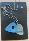 Guitar Picks Necklace. Two guitar picks charm with a necklace chain. Chain Length: approx 20"