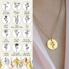 Handmade item Necklace length: 17.5 Inches Materials: Gold, Rose gold, Silver, Stainless steel Closure: Lobster claw Chain style: Cable Style: Minimalist Can be personalised -FLOWER NECKLACE: Choose birth month flowers to create your personalized flower necklace. We offer 12 stunning birth month flowers to represent your loved ones. -MEANINGFUL GIFT: This necklace makes a wonderful gift. It is a must-have fashion accessory for weddings―perfect for flower girls and bridesmaids. This botanical necklace is an appropriate gift for Mother's Day, Christmas, anniversaries, birthdays, and Valentine's day. -VERSATILE: With a minimalist design and elegant floral engraving, this necklace pairs well with any outfit. It can be worn by itself or layered with other necklaces. -ITEM SPECIFICATIONS: Chain length: 17.5" - Coin diameter: 18mm - Material: Silver-plated, Gold-plated, Rose Gold-plated stainless steel. Tarnish resistant. Care Tips: We recommend taking your jewellery off for the shower, pool or spa. Also remove when sleeping or exercising and avoid contact with perfume and chemicals. For cleaning we recommend using a soft lint free cloth. Please store in a cool dry place.