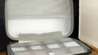 The Ninja Atomos V softshell case by Atomos is made of neoprene material and features an adjustable design. It is specifically designed to fit a Atomos display, providing protection and portability for the device.