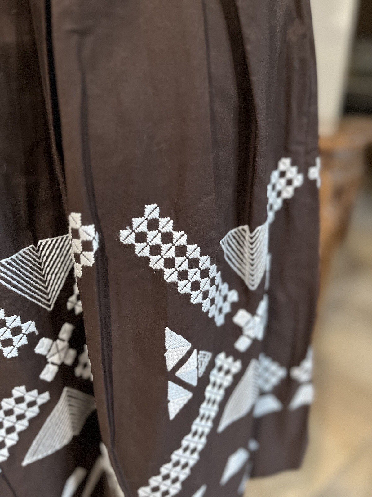 Add this beautiful Peck & Peck embroidered A-line knee-length skirt to your wardrobe. Made of high-quality cotton material, this skirt is perfect for casual and workwear occasions during the spring and summer seasons. Its elegant pattern, brown color, and festival theme make it a great addition to any outfit. The skirt features a convenient zip closure, is lined, and is sized for regular fit. Whether you're dressing up or down, this piece is a versatile addition that can be accessorized to fit any style. Don't miss out on the chance to add this unique skirt to your collection. In excellent condition like new Waist 14.5” Length 24.5”