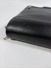 The Samsonite leather expandable briefcase 14" #1910 is a classic and stylish accessory for men. Made from high-quality leather with a fabric lining, this medium-sized briefcase features a zip closure, inner dividers, and multiple pockets for organization. The detachable strap, adjustable strap, and lightweight design make it convenient for everyday use. The black color and sleek design make it a versatile option for any professional or business setting.
