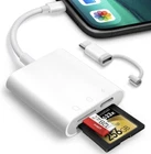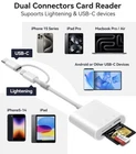This SD card reader is perfect for iPhone users who need to read MicroSD cards. It is designed specifically for iPhone and is compatible with the latest models. You can easily insert your MicroSD card and the reader will automatically scan and display the contents of the card. This card reader is ideal for those who need to read MicroSD cards on the go. Its compact design makes it easy to carry around and its compatibility with the iPhone means you can use it anywhere. Whether you need to read cards for work or personal use, this SD card reader is the perfect solution. SD Card Reader for iPhone iPad, Oyuiasle Trail Game Camera SD Card Viewer with Dual Slot for MicroSD/SD, Dual-Connector Memory Card Adapter for Photography, Plug and Play