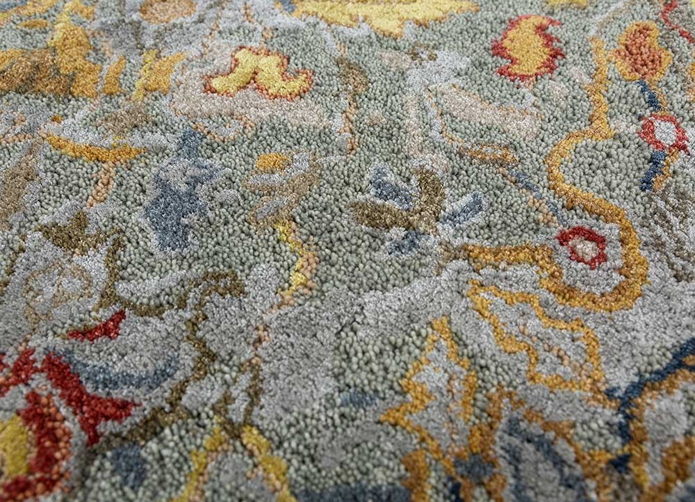 Hand Tufted Wool Area Rug: Traditional Blue Floral Medallion, Handmade Carpet