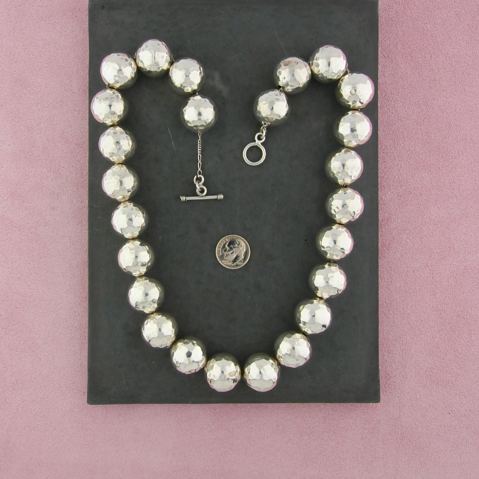 sterling silver chunky hammered bead toggle necklace size 21in Pre-loved but in great condition - Weight - 164.5g Size - 21in Width - 19mm Item ID - ABP93234545