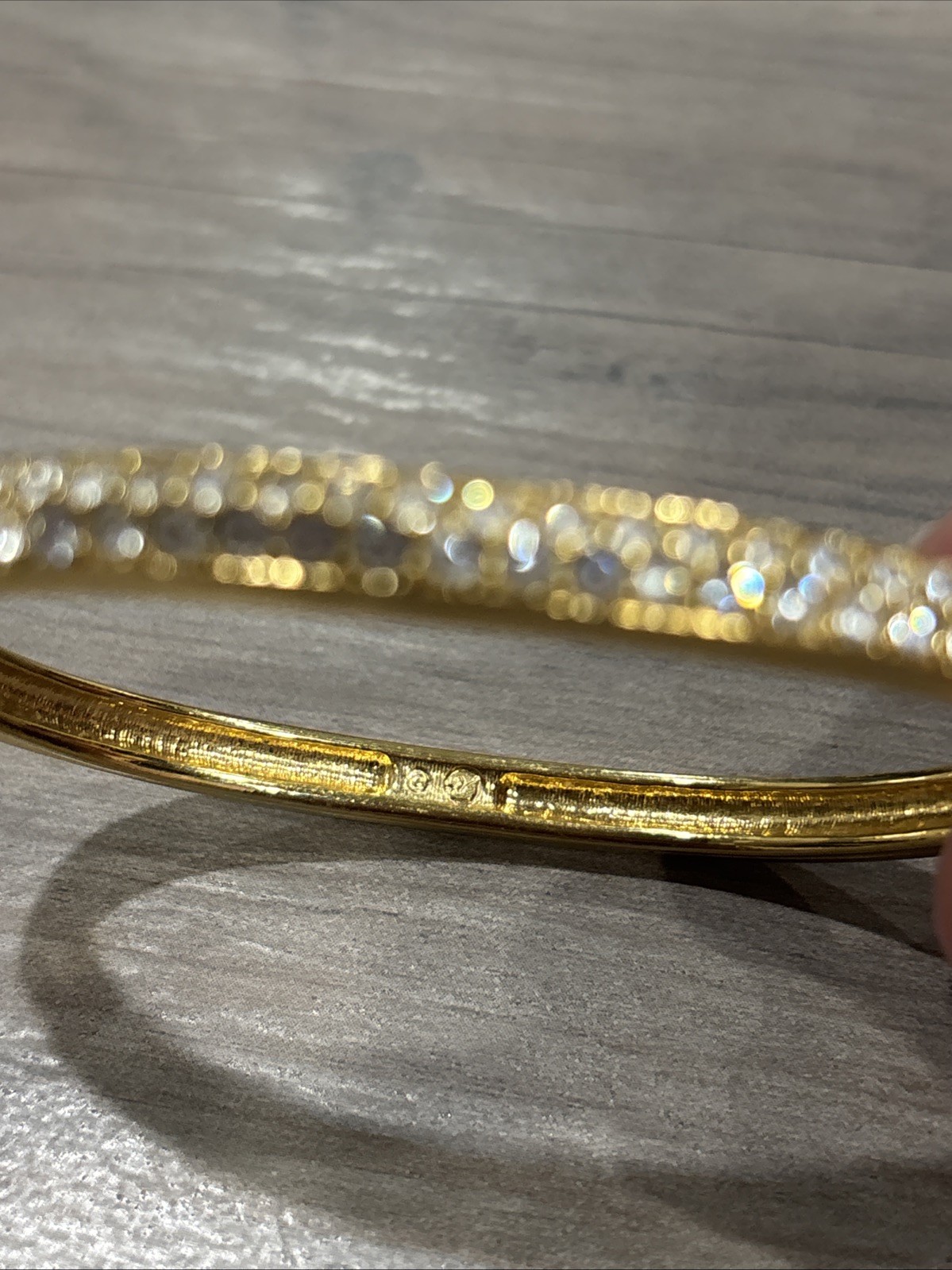 This Swarovski gold tone bangle bracelet is a stunning piece of fashion jewelry that is perfect for everyday wear. The hinged closure makes it easy to put on and take off, while the crystals add a touch of beauty and elegance to any outfit. The gold color and signature Swarovski branding ensure high quality and a stylish look. The bangle style and themed around beauty and love make it a versatile accessory that can be worn for various occasions.