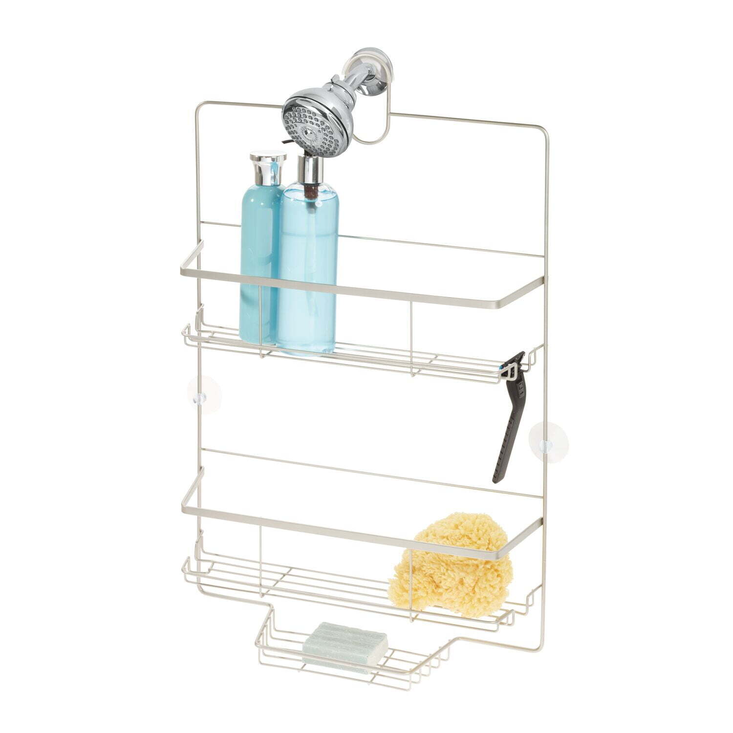 , upgrade your shower experience! This shower caddy fits any shower head and features a wide shelf for extra storage. The satin rust-resistant finish makes it durable and adds style to your shower. Two wide metal mesh shelves hold all your shampoo, soap, body wash, shaving cream, and other shower essentials. The bottom shelf is perfect for small items like razors or bath towels. It comes with a non-slip shower head clip and two large plastic suction cups to hold the shower caddy in place. Measures 15.5" x 4.14" x 25.21". On May 6, 2025 at 20:33:56 PDT, seller added the following information: