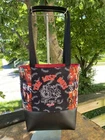 tote bag. This basic tote is anything but basic. Coming in at a finished size of 9” wide, 12” tall, 4” deep with approximately 26” straps. Exterior bottom is made with durable marine vinyl. Exterior upper is made with custom cotton woven fabric. Interior fabric is waterproof canvas and the straps are made with StrapWorks heavy weight polypropylene webbing. A great bag for anyone to use.
