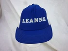 This is a great trucker hat, a cool 1980's vintage cap on the front, it reads, LEANNE. it has a plastic snapback adjuster on the back, nice used cap-with patina and grunge from wear. check out my other lids on ebay now Check out my other items ! I ship all my baseball cap Auctions in Boxes! that way they arrived to you uncrushed. I SHIP FAST!!! I use first class USPS shipping! This item comes from a smokefree home, I accept paypal or you can pay when you pick up an item, any other payment questions please email me. I will combine/discount shipping charges on multiple purchases to help save you money. if you buy multiple items, please wait for me to send you an invoice with the discounted shipping on it. Buyer pays $3.99 for standard shipping & packaging costs, in US (lower 48 states) - shipping to hawaii, alaska, Canada, JAPAN,AND OTHER COUNTRIES is extra, please email me for international shipping rates, -----------------Insurance is an additional charge, please ask for insurance if you would like it. Insurance needs to be purchased by the customer, in order to have any coverage for shipments lost or damaged by USPS, FedEx, or UPS. I use Fed Ex ground, UPS, and USPS for shipping, please make sure you are able to receive packages via all these carriers. ----------------- 14 Day money back return policy, if returned due to buyer changed their mind, the buyer will pay for shipping product back and the original shipping. The refund will be processed upon my receipt of the returned item and full purchase price will be refunded. The item must be in the same condition as when purchased. If item needs to be returned due to my error, I will pay for all shipping. any questions... Please Email me before bidding! Thanks for bidding! Box I