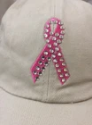 trucker hat baseball cap Vintage Hook And Loop PINK BLING BREAST CANCER RIBBON