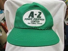This is a great trucker hat, a cool 1980's vintage cap! on the front, it reads, A-Z Power Equipment Center Fort Collins, Colorado. it has a plastic snapback adjuster on the back, nice used cap-see photos. check out my other lids on ebay now Check out my other items ! I ship all my baseball cap Auctions in Boxes! that way they arrived to you uncrushed. I SHIP FAST!!! I use first class USPS shipping! This item comes from a smokefree home, I accept paypal or you can pay when you pick up an item, any other payment questions please email me. I will combine/discount shipping charges on multiple purchases to help save you money. if you buy multiple items, please wait for me to send you an invoice with the discounted shipping on it. Buyer pays $3.99 for standard shipping & packaging costs, in US (lower 48 states) - shipping to hawaii, alaska, Canada, JAPAN,AND OTHER COUNTRIES is extra, please email me for international shipping rates, -----------------Insurance is an additional charge, please ask for insurance if you would like it. Insurance needs to be purchased by the customer, in order to have any coverage for shipments lost or damaged by USPS, FedEx, or UPS. I use Fed Ex ground, UPS, and USPS for shipping, please make sure you are able to receive packages via all these carriers. ----------------- 14 Day money back return policy, if returned due to buyer changed their mind, the buyer will pay for shipping product back and the original shipping. The refund will be processed upon my receipt of the returned item and full purchase price will be refunded. The item must be in the same condition as when purchased. If item needs to be returned due to my error, I will pay for all shipping. any questions... Please Email me before bidding! Thanks for bidding! Box GGG