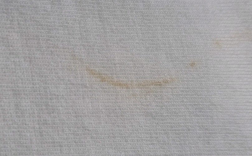 Has a couple stains on front but bleach will get that out please review all photos for condition before purchasing and have a great day
