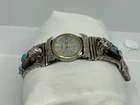 Navajo Native American Sterling silver watch band With two bear claws and turquoise. The watch was instaed for appearance.